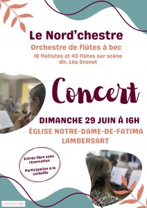 Cette activité mensuelle se clôture au mois de juin par des concerts en région : Villeneuve d’Ascq, Croix et Lambersart en juin 2025.