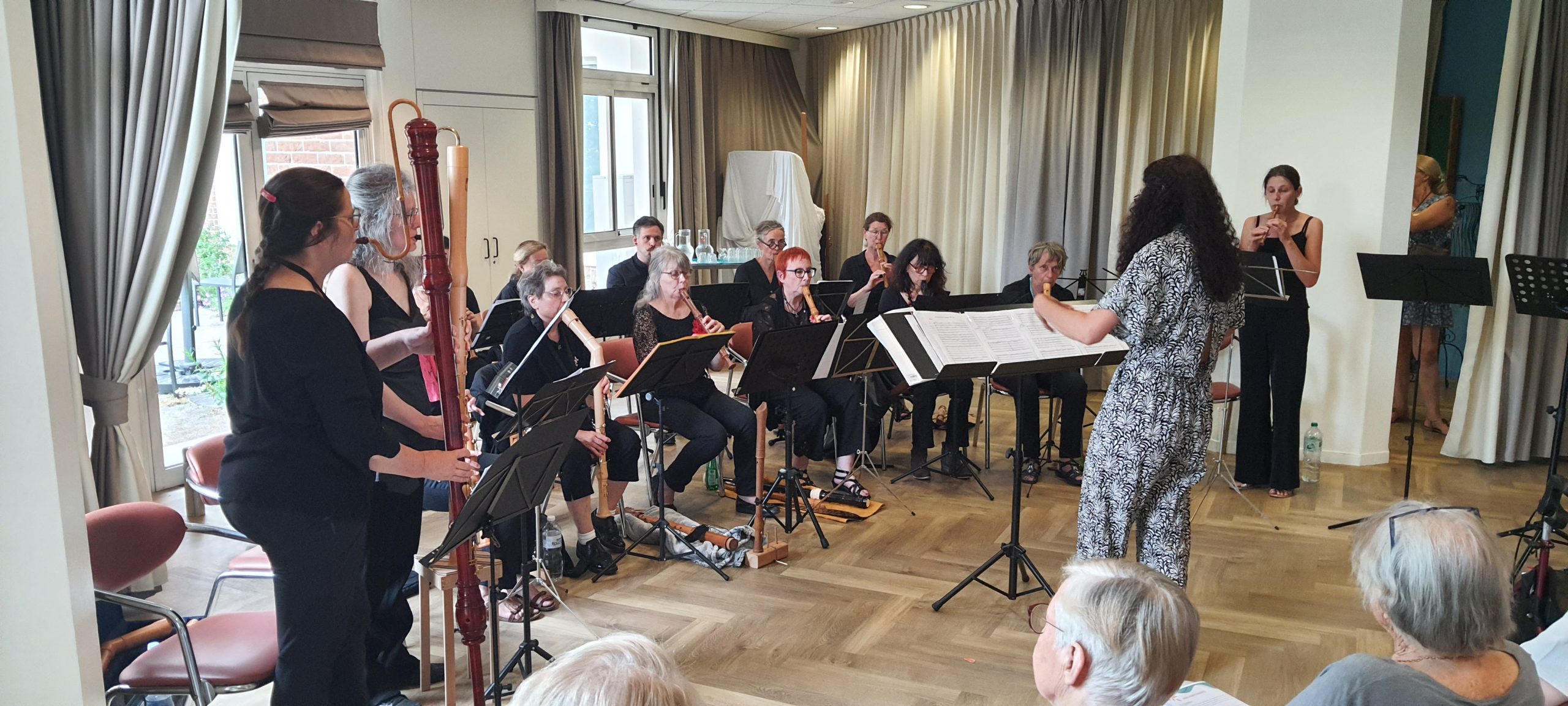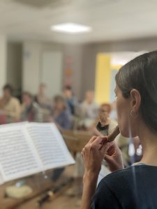 Cette année, 18 flûtistes à bec amateurs de 30 à 75 ans ont rejoint l’aventure. Nous pouvons également accueillir des flûtistes mineur.es. Il n’y a pas de niveau minimum, la seule demande est d’être à l’aise au moins avec la ténor et l’alto.